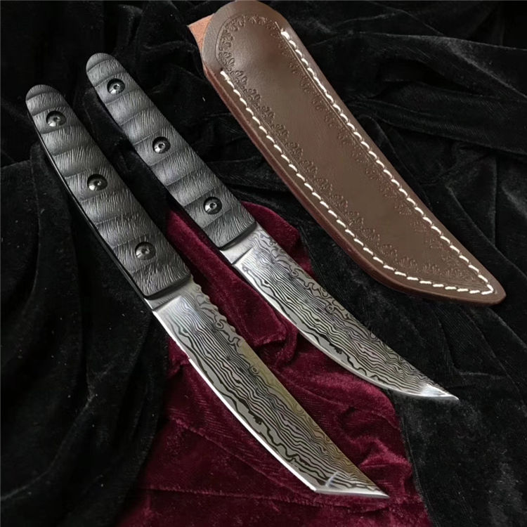 幽冥必杀直刀 刃材:400C钢激光花纹 柄材:G10 制作,刃口锋利 总长245MM 刃长:120MM 刃厚:5MM 刃宽:23MM 硬度:58HRC 热处理技术:真空热处理 开刃方式:水冷二次开刃,以锋利度为主 皮套包装:复古风格牛皮刀套 重量:223克(包含皮套)