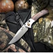 巨力蝴蝶檀木版10580折刀 全长:236mm 刃长: 101mm 刃材:9cr18mov 硬度: 58-60HRC 表面: 石洗+缎面 刃厚: 3.2mm 柄材:檀木,420J2内衬 锁型: 轴锁 重量: 154g