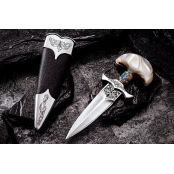 其他:手柄材料是亚克力仿贝,中间彩色松石夹黄铜完美组合,鞘是手刺之中最新设计,真皮包檀木而且木内双面贴软塑,刀入鞘后不会摇摆同时吸住刀刃不脱落,刀面是镜面处理,带背夹仔很值得收藏的一把手刺来的