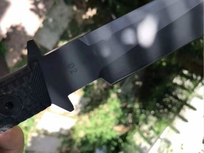 挺进者海豹突击队战士刀 总长:29cm 刃长:14cm 刃宽:3.6cm 刃厚:6mm 刃材:美国CPM-D2 硬度:60-62HRC,韧性保持度很好 热处理:专业真空热处理 表面处理:战术枪钛灰与虎纹 柄材:黑色G10 刀鞘:进口K鞘 做工完美,订单尾货