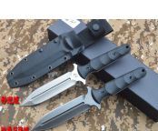 刃材:D2 全长:263mm 刃长:14mm 刃厚:5.3mm 刃宽:33mm 表面:精幼砂光 硬度:HRC59-60 (真空油淬热处理) 手柄:G-10+表面防滑处理 刀鞘:进口Kydex鞘 (织带+K鞘夹) 重量:0.5KG(含包装物)