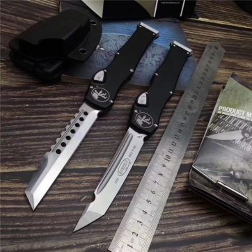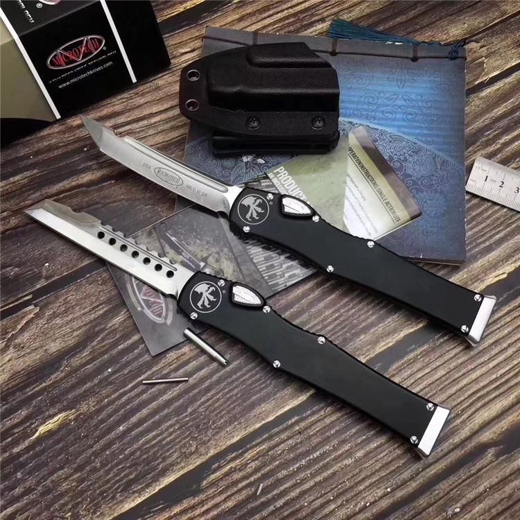 美国微技术光晕6直刀出跳刀 品牌:MICROTECH 全长:23.5CM 刃长:9.8CM 刃宽:1.7CM 刃厚:0.32CM 刃材:D2 柄材:铝合金 刀型:直跳 锁定类型:按钮锁 重量:188克(含包装) 附件:Kydex鞘,说明书,彩盒 整刀用CNC,电脑锣,线切割制作而成,手工,精密度非常高,绝对不会缩头,很值得收藏的一把刀